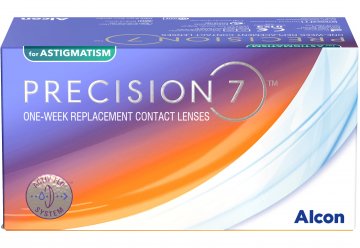 Precision7 for Astigmatism (27 lentillas) son lentillas tóricas de uso diario y reemplazo semanal, para corregir el astigmatismo junto con la miopía o la hipermetropía, desarrolladas por el laboratorio Alcon.